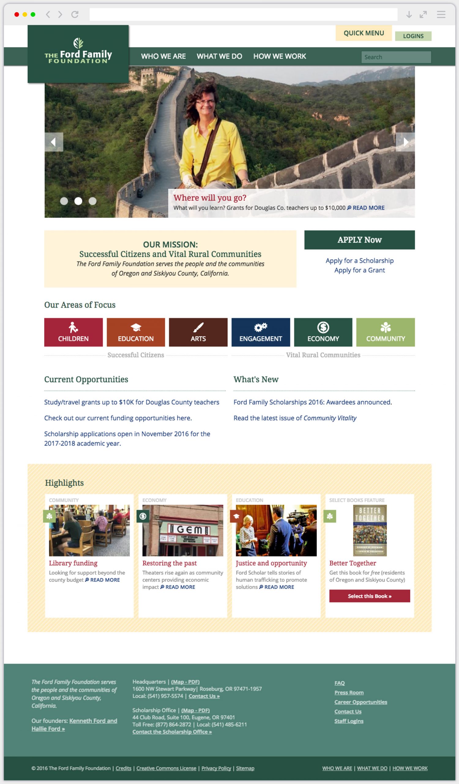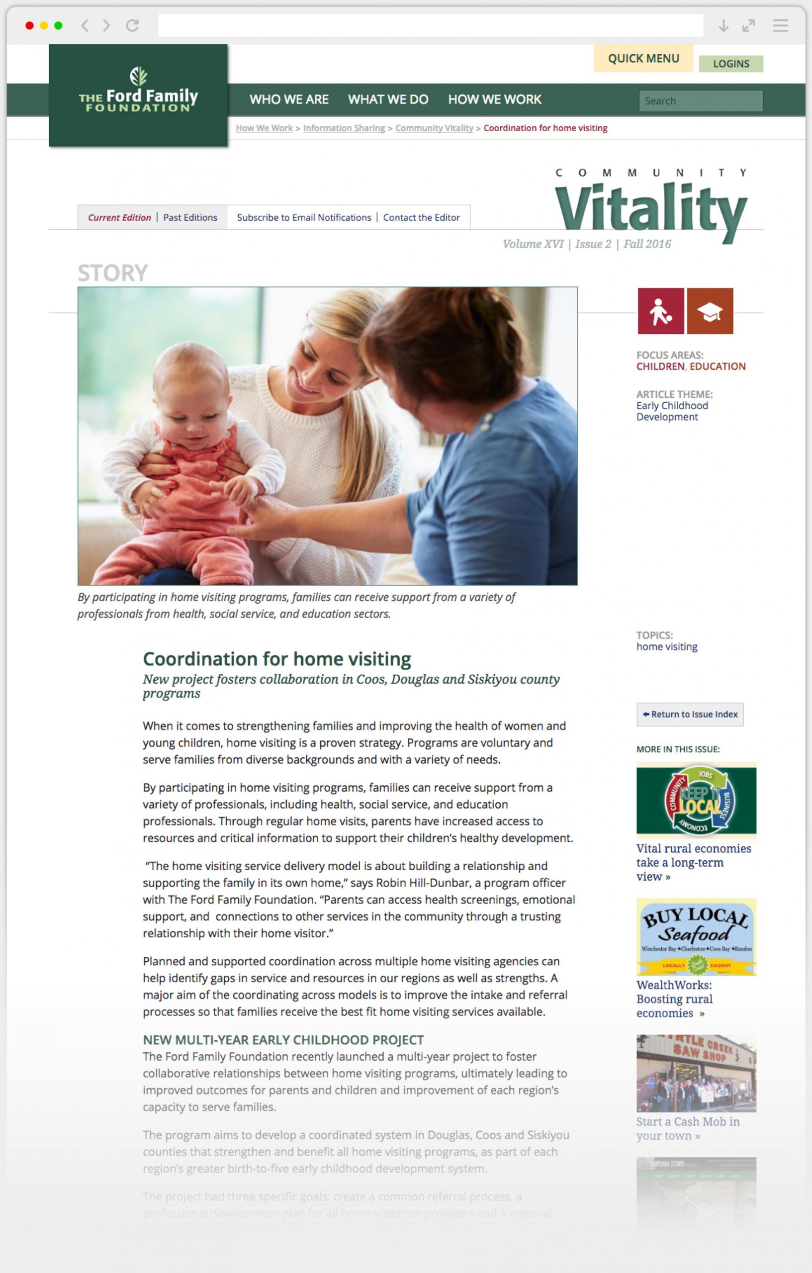 The Ford Family Foundation site was a Drupal site with robust features and back end setup, including a system called “Select Books” where users could order free books in return for a book review on the site. The regular Vitality publication was also a main feature.